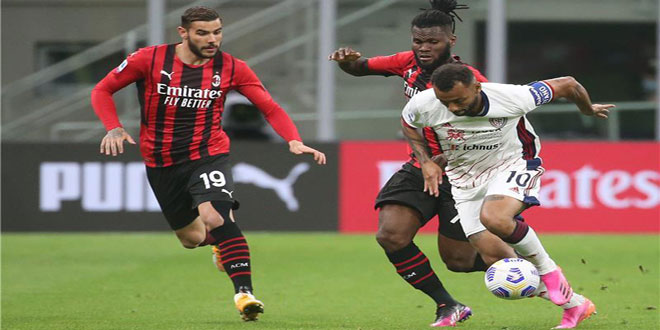 تعادل فريق ميلان أمام ضيفه كالياري دون أهداف في المباراة التي جمعتهما ضمن منافسات الجولة السابعة والثلاثين من الدوري الإيطالي لكرة القدم.
