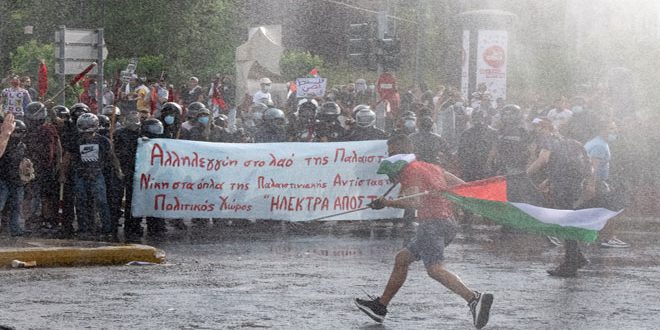 وذكرت وكالة وفا أن المتظاهرين الذين انطلقوا من أمام وزارة الدفاع اليونانية باتجاه السفارة الأميركية أمس رددوا شعارات تدين العدوان الإسرائيلي الوحشي على الفلسطينيين في قطاع غزة المحاصر واستمرار عمليات الاحتلال الاستيطانية وجرائم التطهير العرقي في القدس المحتلة مطالبين الحكومة اليونانية بنصرة الشعب الفلسطيني ووقف انحيازها ودعمها لكيان الاحتلال.