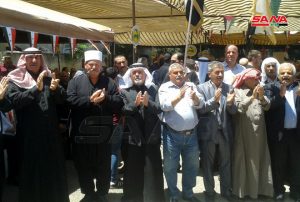 الشيخ خالد حمادة ممثل عشائر الجباوية في القنيطرة ودمشق وريفها أكد أن الاستحقاق الدستوري وإجراء الانتخابات الرئاسية في موعدها يمثل حجر الأساس في البدء بمرحلة الإعمار ومواصلة مسيرة النضال ضد كل طامع ومعتد.