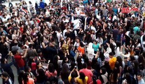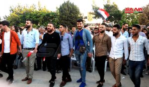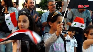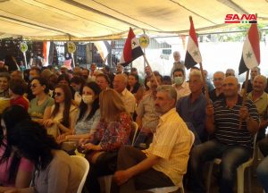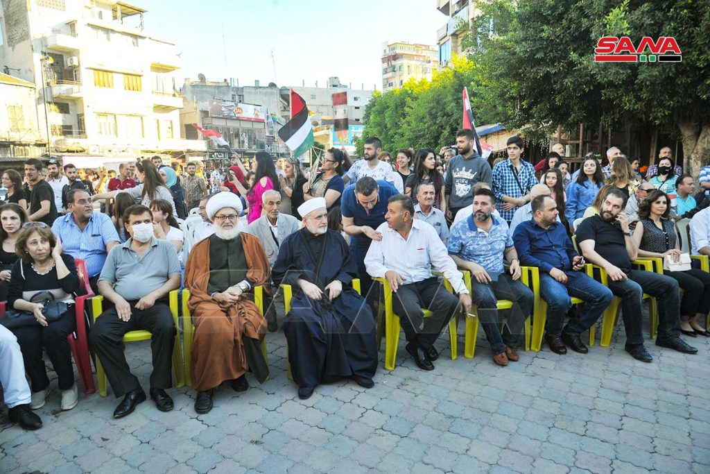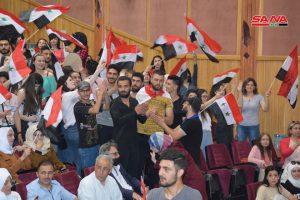 وأكد المتحدثون في كلماتهم خلال التجمع على أهمية المشاركة بالانتخابات الرئاسية التي ستكون بمثابة رسالة للعالم بأن سورية استعادت عافيتها.