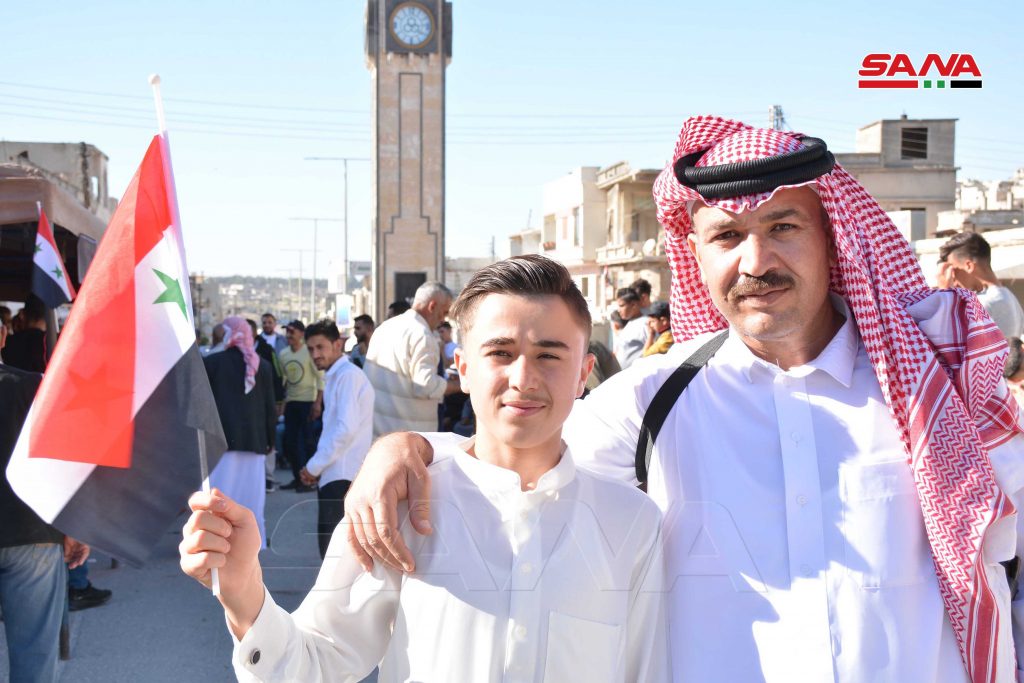 ففي ساحة الشيخ ضاهر بالمدينة احتشد المواطنون من مختلف الفئات العمرية والشرائح المجتمعية رافعين العلم السوري يهتفون لوحدة سورية وعزتها حيث قال المواطن نواف شحادة في تصريح لمراسل سانا أن المشاركة بالانتخابات حق كفله الدستور كما إنه واجب على كل مواطن سوري محب لوطنه.