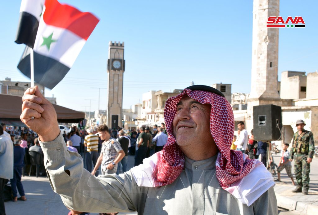 إبراهيم رضوان مختار قرية القنجرة أشار إلى أن يوم 26 أيار هو يوم تاريخي يحتفل فيه السوريون بنصر جديد يتوج صمودهم في حرب شرسة استهدفت وحدتهم على مدى أعوام وإسقاط رهانات الأعداء والمتآمرين.