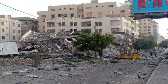 وذكرت وكالة وفا أن طيران الاحتلال استهدف بالصواريخ مبنى سكنياً من عدة طوابق مقابل عيادة الرمال في شارع الوحدة وسط مدينة غزة ما أدى إلى استشهاد طفلة ومسن وإصابة أكثر من 10 فلسطينيين وتدمير أجزاء كبيرة منه.