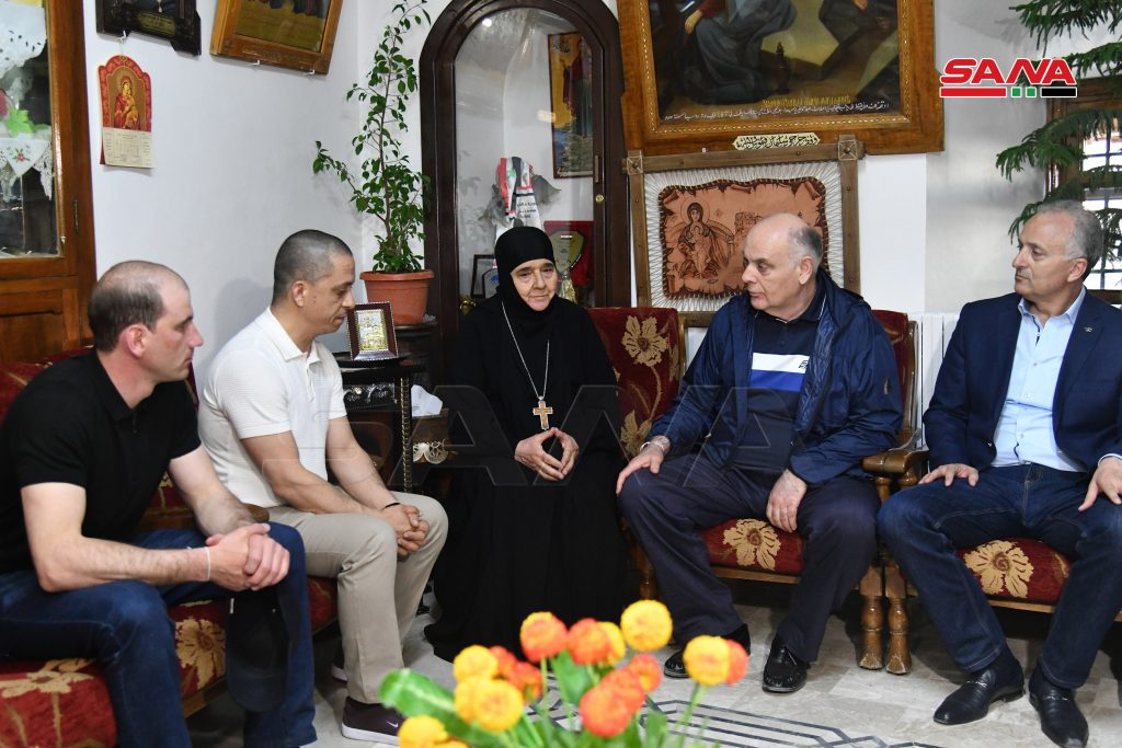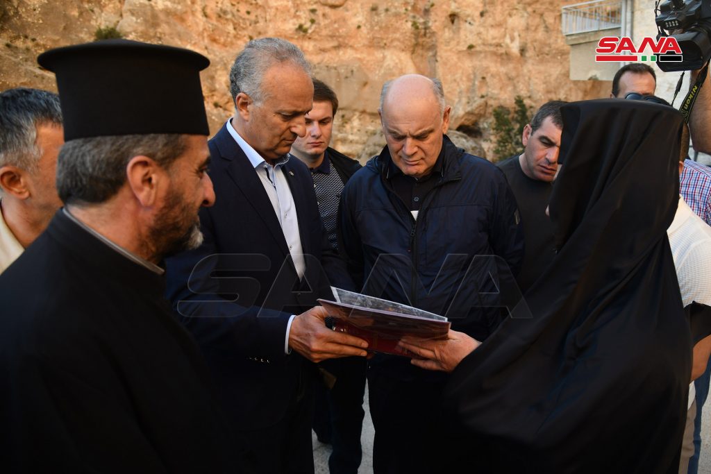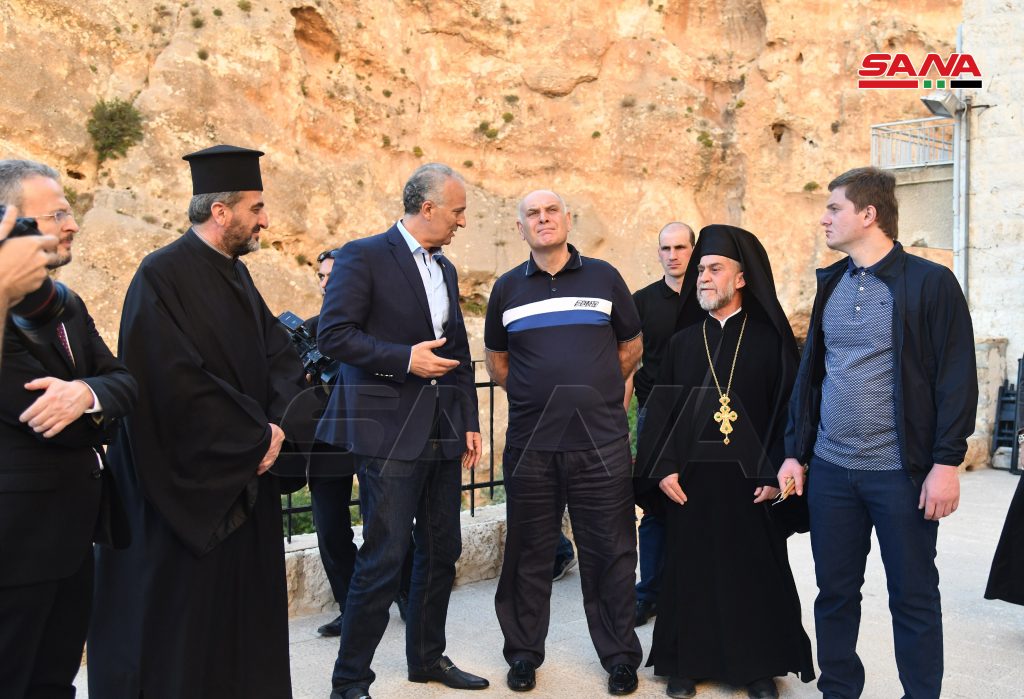وفي دير مارتقلا بمعلولا استمع الرئيس الأبخازي من القائمين على الدير إلى شرح عن أعمال التخريب التي لحقت بالبلدة والكنيسة جراء الإرهاب معرباً عن تقديره لصمود أهالي البلدة وبسالتهم في الدفاع عن هذا المكان الديني والتاريخي.