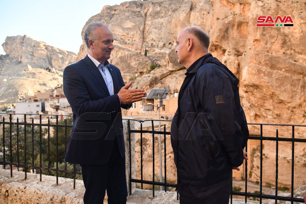 زار رئيس جمهورية أبخازيا أصلان بجانيا والوفد المرافق مساء اليوم بلدتي معلولا وصيدنايا بريف دمشق ضمن برنامج زيارته الحالية إلى سورية.