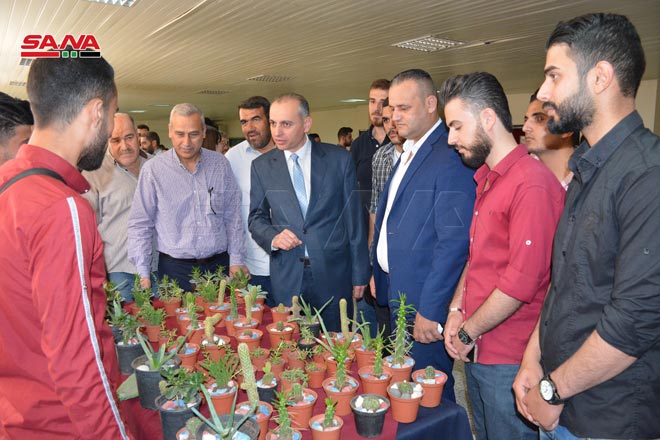 بمشاركة 30 طالباً وطالبة افتتح في كلية الهندسة الزراعية بجامعة البعث في حمص معرض فني لنباتات الزينة ورسومات الطلاب ضم نحو 180 نبتة زراعية من صباريات وعصاريات وورود وأكثر من 30 لوحة فنية.