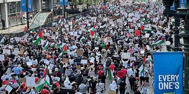 وشهدت مدن أمريكية عدة مظاهرات منددة بالعدوان الإسرائيلي المتواصل على قطاع غزة وجرائمه بحق الشعب الفلسطيني في بقية الأراضي الفلسطينية المحتلة ومطالبة بوقف العدوان والدعم الأمريكي لـ “إسرائيل”.