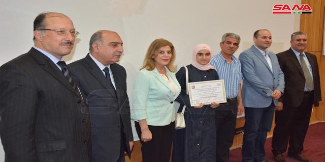 أقيم على المدرج الكبير بكلية الآداب والعلوم الإنسانية بجامعة البعث في حمص حفل تكريم للمتفوقين من أبناء العاملين في الجامعة في الشهادتين الإعدادية والثانوية والبالغ عددهم 80 طالبا وطالبة.