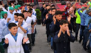 وانطلق المسير من دوار الكنيسة إلى نادي الفيحاء الرياضي بالمنطقة ورفع خلاله المشاركون العلم الوطني السوري ولافتات تدعو للمشاركة بالانتخابات ودعم سورية في استحقاقها الدستوري.