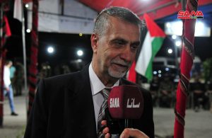وفي مخيم اليرموك بدمشق أقامت حركة فلسطين الحرة فعالية بعنوان “رد الوفا بالوفا” ضمن خيمة “فلسطين” دعماً للاستحقاق الدستوري السوري وتأكيداً على أن الدم السوري والفلسطيني اندمجا بالحرب ضد العصابات التكفيرية الصهيوأمريكية واليوم الفلسطينون يدعمون الشعب السوري.