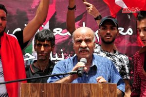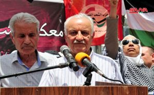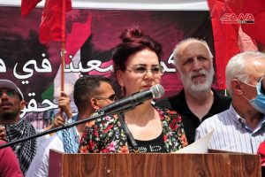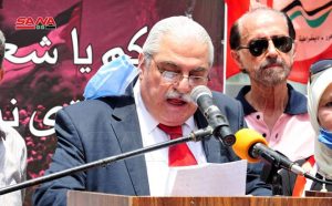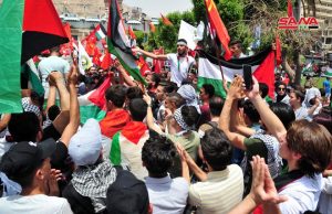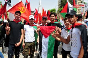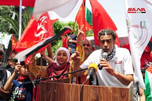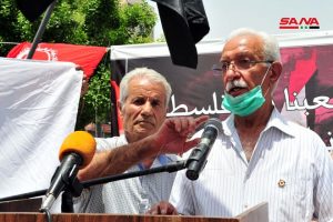 وحمل المشاركون في الوقفة التي نظمها الحزب الشيوعي السوري الموحد في ساحة عرنوس بدمشق الأعلام الوطنية السورية والفلسطينية واللافتات التي تؤكد دعم صمود ومقاومة الشعب الفلسطيني وإدانة الاعتداءات والممارسات الوحشية التي تمارس ضده من قبل سلطات الاحتلال.
