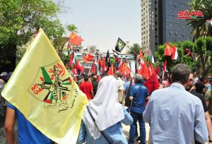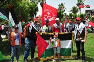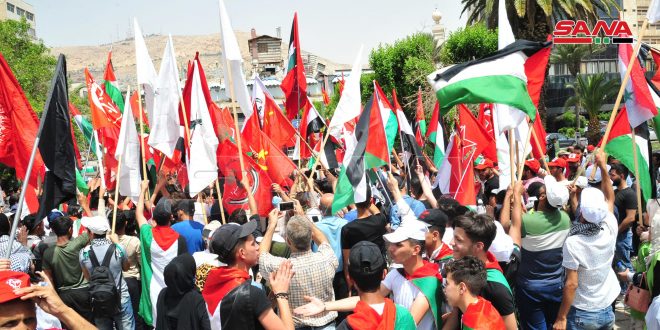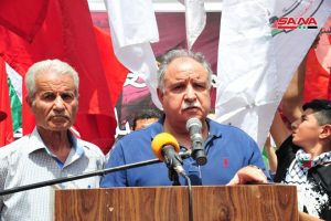 وشدد المشاركون على ضرورة النضال والمقاومة بكل الأشكال لأن العدو الصهيوني لا يفهم إلا لغة القوة لتحرير جميع الأراضي العربية المحتلة من الجولان السوري إلى فلسطين مؤكدين أن الاحتلال إلى زوال مهما طال الزمان ويجب محاكمة قادة الكيان الصهيوني كمجرمي حرب.