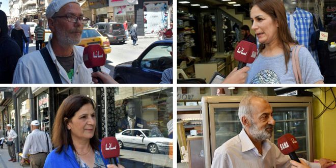 وأكد محمد آغا صاحب محل لبيع العصائر والمثلجات على ضرورة المشاركة الواسعة في هذا الاستحقاق كونه يأتي في ظروف صعبة فرضها واقع الحصار الجائر إضافة إلى الضغوط الخارجية التي ترمي إلى تعطيل إجراء هذا الاستحقاق فيما أكد عبد الكريم الفارس أن السوريين كما تمكنوا خلال السنوات الماضية من الوقوف صفاً واحداً في وجه جميع المتآمرين سيؤكدون من جديد أنهم شركاء حقيقيون في بناء الوطن وسينتخبون من يمثل طموحاتهم وتطلعاتهم في إيصال بلدهم إلى بر الأمان والاستقرار.