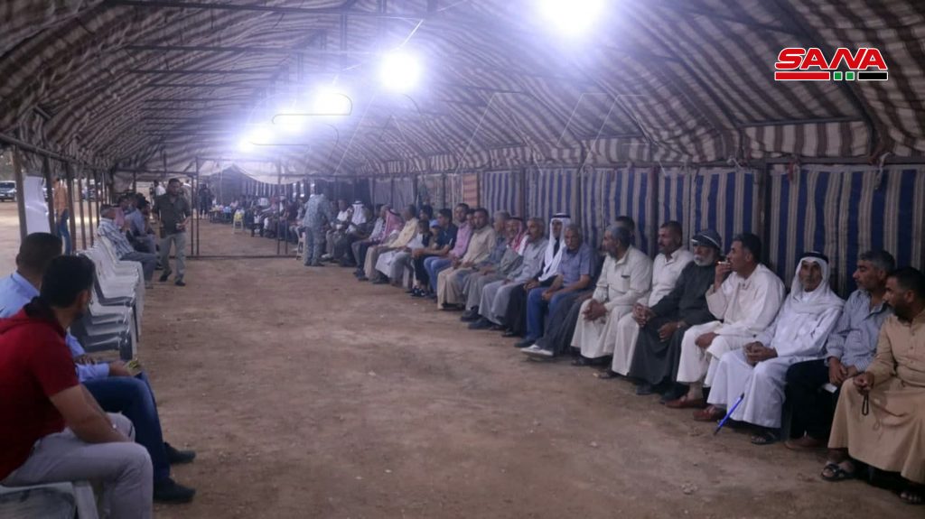 بدوره أوضح الشيخ سلمان ركاب أن الانتخابات هي الطريق للسير بسورية نحو الاستقرار فيما أكد الشيخ عبد الرحمن عبد المجيد رئيس مجلس العشائر العربية أن يوم الانتخاب سيشهد على وفاء السوريين.
