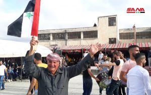 كما نظم أهالي قرية خربة غازي بريف حمص تجمعاً جماهيرياً وسط القرية أكد خلاله المشاركون على تمسكهم بالوطن وسيادته.