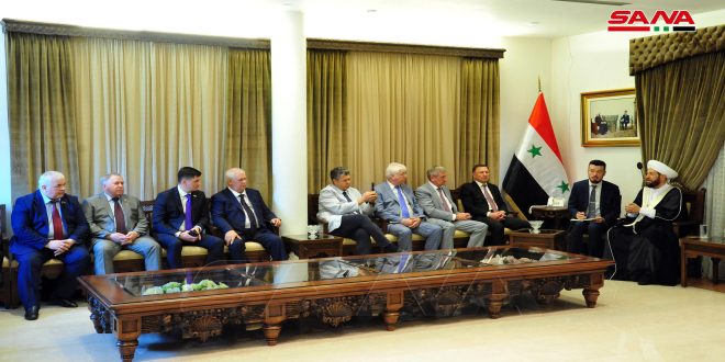 ولفت المفتي حسون إلى أهمية تعزيز علاقات التعاون السورية الروسية على مختلف الصعد معربا عن تقديره لما قدمه الشعب والقيادة في الاتحاد الروسي لسورية في حربها ضد الإرهاب.