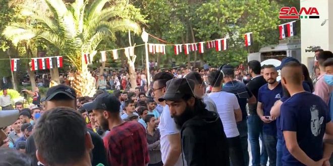 حشود من المواطنين تتجمع أمام مراكز الاقتراع بانتظار فتحها للإدلاء بأصواتهم