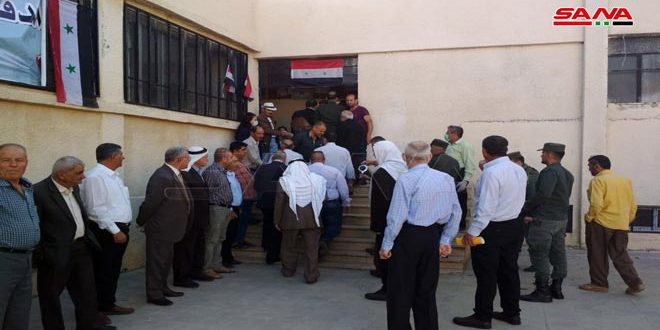 من توافد الأهالي إلى مراكز الاقتراع في السويداء