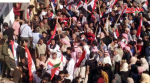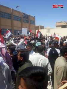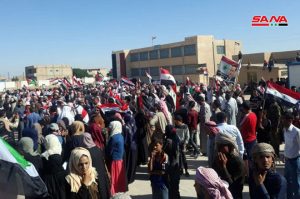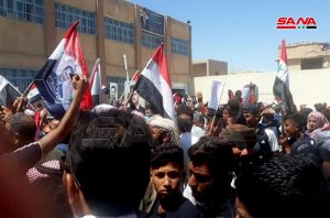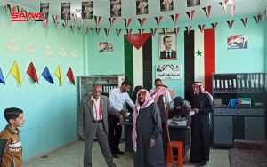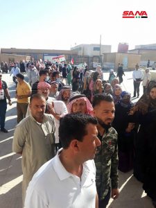 يتدفق الناخبون منذ الصباح إلى صناديق الاقتراع في الريف الشرقي المحرر من الإرهاب في محافظة الرقة لاختيار مرشحهم لرئاسة الجمهورية التي يشاركون فيها على نطاق واسع وفاء لتضحيات الشهداء الذين قدموا أرواحهم ودماءهم ليبقى الوطن عزيزاً وموحداً.