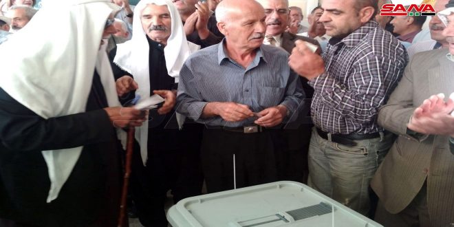 يواصل المواطنون من محافظة السويداء التوافد بكثافة إلى المراكز الانتخابية للإدلاء بأصواتهم في انتخابات رئاسة الجمهورية بمن فيهم رجال الدين.