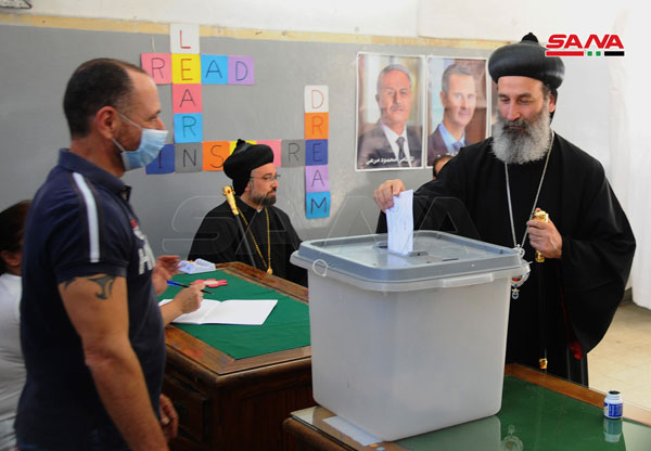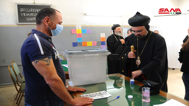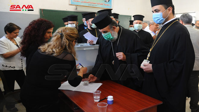 دمشق.. البطريرك يوحنا العاشر يازجي وحشود من رجال الدين المسيحي يدلون بأصواتهم في الانتخابات الرئاسية