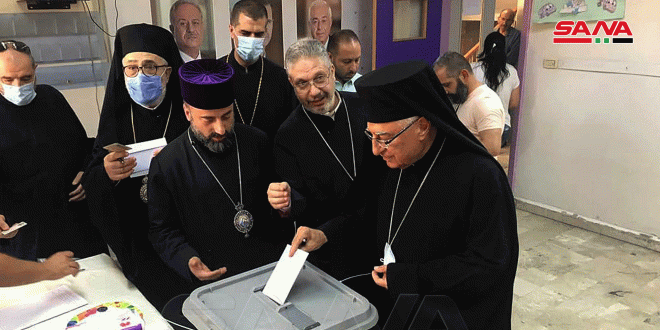 أدلى بطريرك أنطاكية وسائر المشرق للروم الملكيين الكاثوليك يوسف العبسي بصوته في الانتخابات الرئاسية اليوم بمركز الاقتراع في مدرسة الرسالة بمنطقة باب شرقي بدمشق.