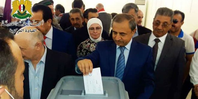 أدلى محمد الشعار نائب رئيس الجبهة الوطنية التقدمية بصوته في الانتخابات الرئاسية بالمركز الانتخابي في مديرية ثقافة دمشق.