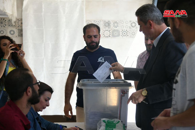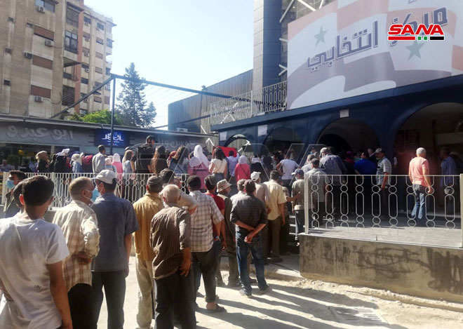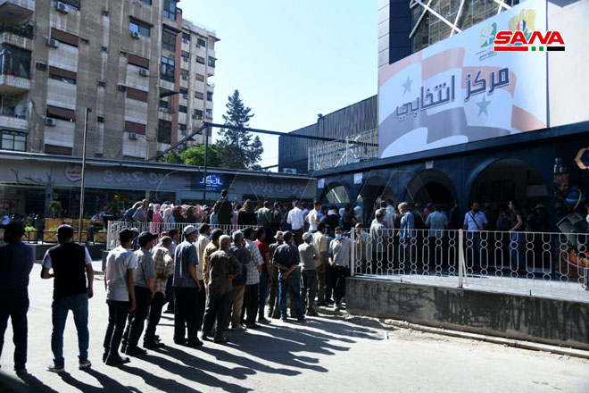 حي الميدان بدمشق وحشود المواطنين في مراكز الاقتراع للإدلاء بأصواتهم في ‏الانتخابات الرئاسية ‏