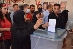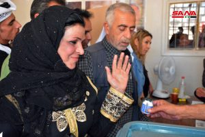 هزار الدقس عضو مجلس الشعب أوضحت أن أهالي الحي يتوافدون إلى مراكز الاقتراع ليعبروا عن تمسكهم ببلدهم ورفضهم كل أشكال الإرهاب الذي شردهم ودمر منازلهم وليقولوا: “سنعمر بلدنا وبيوتنا مع الرئيس الذي نراه مناسباً لنا والذي سيكمل مع الشعب مسيرة البناء والإعمار والنصر”.