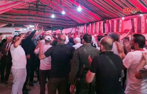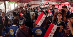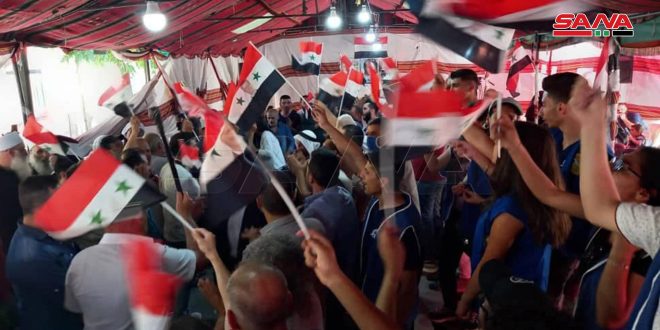 شهد المركز الانتخابي الذي احتوته “خيمة وطن” المقامة في جرمانا حضوراً لافتاً لمواطنين من مختلف أحياء المدينة جاؤوا ليدلوا بأصواتهم في الانتخابات الرئاسية إضافة إلى وفود رسمية واكبت مجريات العملية الانتخابية في المنطقة.