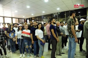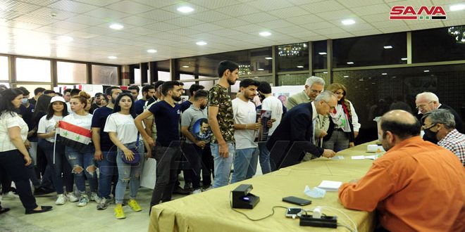 مكتبة الأسد الوطنية بدمشق أعرق مؤسسة ثقافية سورية تحولت إلى خلية نحل منذ صباح اليوم تستقبل المثقفين والمواطنين على اختلاف اهتماماتهم وطلاب الجامعات من خلال مركز الاقتراع الذي أقيم في قاعة المعارض بالمكتبة للمشاركة في انتخاب رئيس الجمهورية العربية السورية.