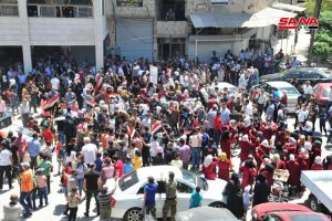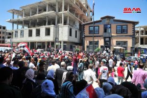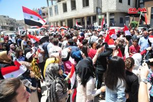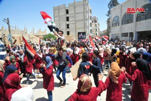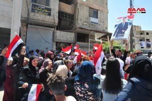تشهد مدينة عربين احتفالات شعبية دعماً للاستحقاق الرئاسي وتأكيداً من الأهالي الذين احتشدوا أمام جامع الفتح أن سورية ستبقى عصية على المؤامرات والإرهاب الذي أرادوه لها.