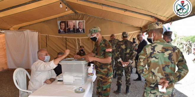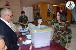 كما أدلى عناصر الجيش العربي السوري ضباطاً وصف ضباط وأفراداً وعاملين مدنيين بأصواتهم في المراكز الانتخابية في الإدارات والكليات والمعاهد والمدارس والمشافي العسكرية والوحدات والتشكيلات المنتشرة على مساحة الوطن.