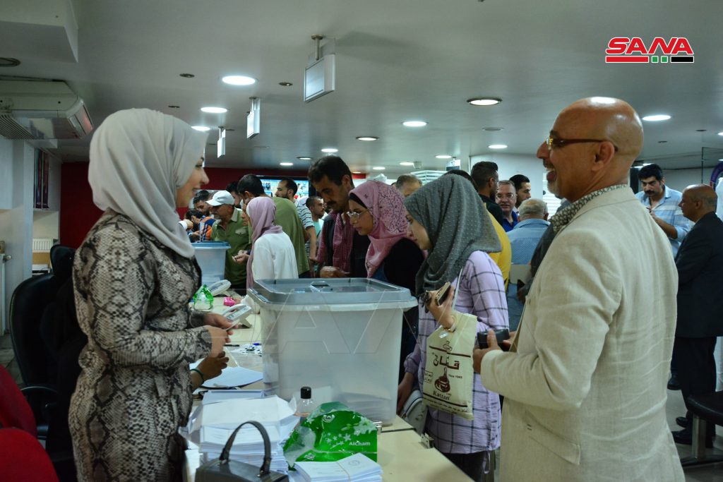 شهدت المراكز الانتخابية في غرف الصناعة والتجارة والمنطقة الحرة بدمشق اقبالاً لافتاً على صناديق الاقتراع للمشاركة في الاستحقاق الدستوري لانتخاب رئيس الجمهورية.