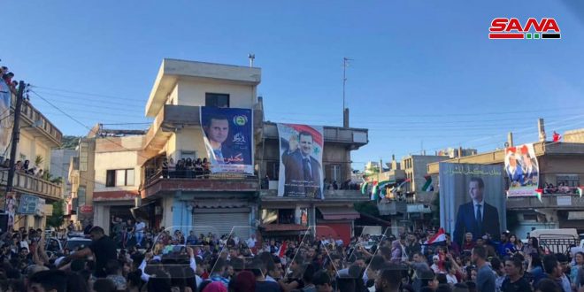 تجمع شعبي حاشد في مصياف احتفاء بإنجاز الاستحقاق الدستوري