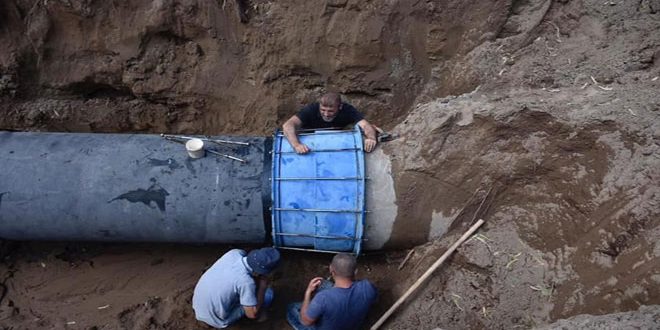 أنهت ورشات مؤسسة مياه الشرب في محافظة اللاذقية إصلاح العطل الطارئ على خط الجر الثاني في موقع الهنادي.