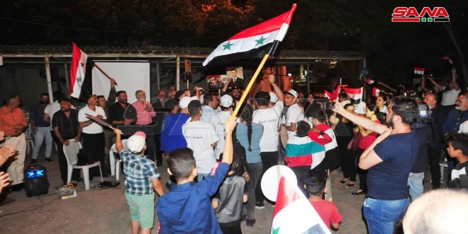 وأكد المشاركون الذين حملوا الأعلام واللافتات الوطنية وصور الدكتور الأسد أن الشعب السوري قال كلمته لاستكمال انتصارات الجيش العربي الباسل على الإرهاب وتطهير وتحرير كل الأراضي السورية وتثبيت الأمن والاستقرار وإعادة إعمار سورية والنهوض بها بعد ما تعرضت له من حرب ظالمة وحصار جائر.