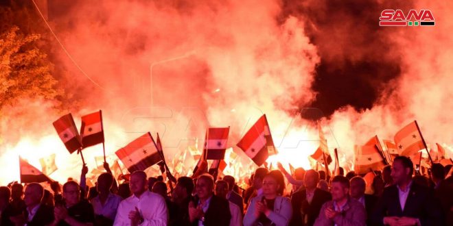 حماة-سانا احتفالاً بفوز الدكتور بشار الأسد بانتخابات رئاسة الجمهورية أقيمت في ناحية بري الشرقي بمنطقة …