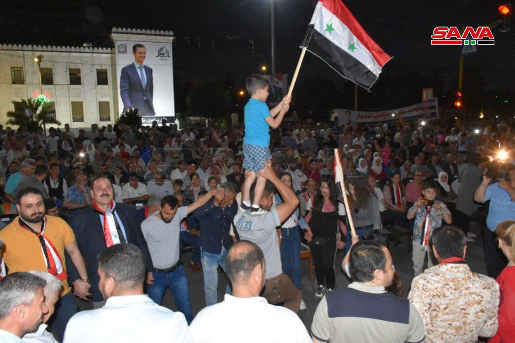 يواصل أهالي محافظة حماة احتفالاتهم بفوز الدكتور بشار الأسد بمنصب رئيس الجمهورية العربية السورية حيث أقيم في ناحية سلحب احتفال جماهيري حاشد أعرب خلاله المشاركون عن التفافهم حول قيادته وإصرارهم على تعزيز الانتصار العسكري وصون دماء الشهداء.