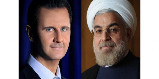 تلقى السيد الرئيس بشار الأسد اليوم برقية تهنئة من الرئيس الإيراني حسن روحاني بفوزه بالانتخابات الرئاسية.