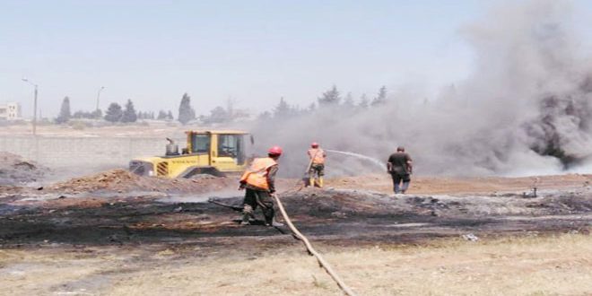 وفي درعا أخمد فوج الإطفاء وإطفاء الزراعة بالتعاون مع الأهالي حريقاً اندلع بين داعل وابطع بريف درعا.