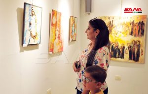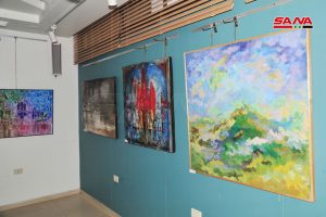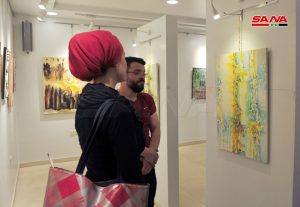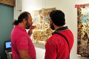 الفنان أحمد الخطيب مدرس في مركز ثروة للفنون أوضح أنه شارك بأربعة أعمال زيتية تمثل حارات دمشق القديمة التي تعج بالحياة فيها ألوان تفاؤل وحركة للناس الصابرين والمقاومين الذين تحدوا الإرهاب وانتصروا فيما بعد ضمن إطار إحياء التراث من خلال الفن مبيناً أنه اختار أعمالاً فيها حركة قوية للناس لأن الأمل بالفن والأمل بالحياة وهذا يعبر عن حالة الشارع السوري الذي انتفض في وجه الإرهاب وانتصر.
