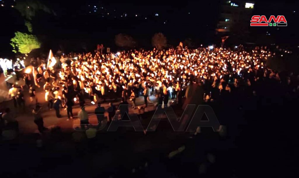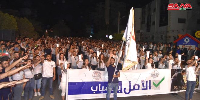 احتفالاً بإنجاز الاستحقاق الدستوري وفوز الدكتور بشار حافظ الأسد بمنصب رئيس الجمهورية العربية السورية أقام فرع الاتحاد الوطني لطلبة سورية في طرطوس بالتعاون مع مدرسة دار الأمان لأبناء الشهداء مسير شموع مساء اليوم بعنوان “مسير الوفاء للقائد والشهداء”.