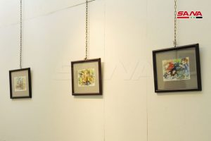 وأوضح أن الأعمال هي خواطر اختلف فيها المكان والزمن ولكنها يمكن أن تتحول إلى عمل كبير وهي ولادة حملت رسائل عدة بالاعتماد على الخط واللون المائي مع إبراز جوانب مختلفة مستخدماً الكوركتر الأبيض.