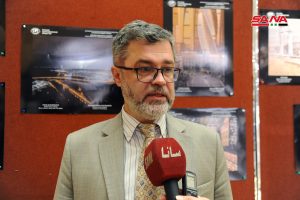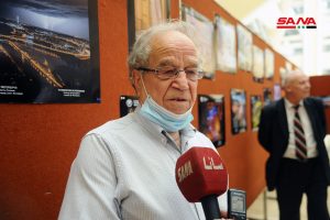 الدكتور عقبة فاكوش عميد كلية الهندسة المعمارية بجامعة دمشق أشار إلى أن الصور والخرائط قدمها الطلاب والأساتذة في الجهات العلمية المنظمة للمعرض وهي منتقاة بشكل دقيق وملتقطة بطريقة فنية.
