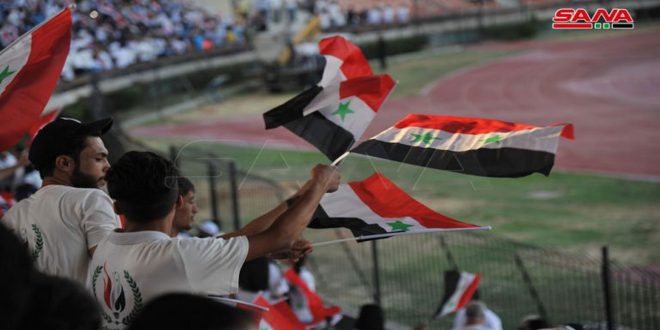 وشهد المهرجان الذي أقيم في ملعب المدينة الرياضية عرضاً للدراجات الهوائية قدمته مجموعة من أبطال سورية بالدراجات ضمن أجواء حماسية عالية وهتافات وطنية رددها المشاركون أكدت على التمسك بالقرار الوطني المستقل.