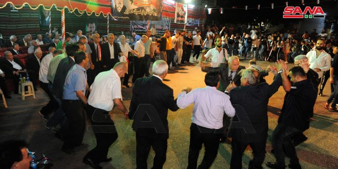بمشاركة واسعة من أهالي ضاحية الأسد السكنية في منطقة حرستا بريف دمشق أقامت رابطة المحاربين القدماء وضحايا الحرب مساء اليوم احتفالاً مركزياً جماهيرياً بمناسبة فوز الدكتور بشار الأسد بمنصب رئيس الجمهورية تضمن عروضاً فنية وقصائد شعرية وأغاني وطنية.