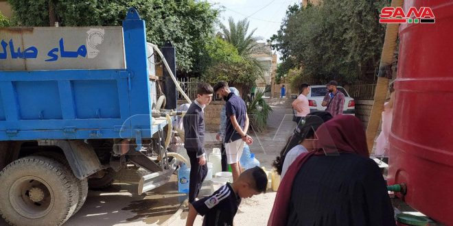 ومع دخول فصل الصيف وارتفاع درجات الحرارة تزداد حاجة الأهالي لمياه الشرب وللتيار الكهربائي الذي يشغل أجهزة التبريد في ظل سعي الجهات المعنية في المحافظة لتأمين الحدود الدنيا من هذه الخدمات عبر الاعتماد على تأمين مياه الشرب عبر الصهاريج وخزانات المياه وتوزيع كميات الكهرباء القليلة الواردة من سد الفرات ومحطة توليد الكهرباء بالسويدية على التجمعات السكنية.