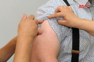 سانا واكبت عملية تطعيم الكوادر الطبية والتمريضية والخدمية باللقاح المضاد لكورونا في مشفى المواساة الجامعي بدمشق ورصدت آلية سير العملية والإجراءات المتخذة بهذا الصدد حيث أكد الدكتور عصام زكريا الأمين مدير عام المشفى إعطاء اللقاح خلال المرحلة الأولى من التطعيم لـ 150 شخصاً من الكوادر الطبية التمريضية والخدمية العاملين بالخط الأول وعلى تماس مباشر مع المرضى في غرف العزل والعناية المركزة ويجري حالياً تطعيم 1400 آخرين من العاملين بالمشفى أيضاً بالجرعة الثانية من لقاح سبوتنيك V الروسي بعد أن أخذوا الجرعة الأولى منه منذ نحو شهر.