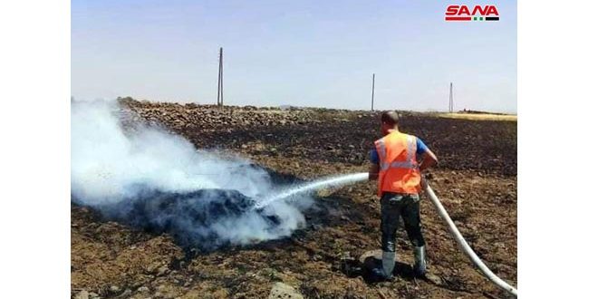 وأوضح قائد فوج إطفاء القنيطرة العقيد فراس سمارة في تصريح لمراسل سانا أن عناصر الفوج وبالتعاون مع الأهالي تمكنوا من السيطرة على حريق نشب في أرض مزروعة بمحصول القمح في قرية سويسة بالقطاع الجنوبي من المحافظة أدى إلى احترق نحو 8 دونمات من حقول القمح وتمت السيطرة على الحريق قبل امتداده إلى الحقول المجاورة.
